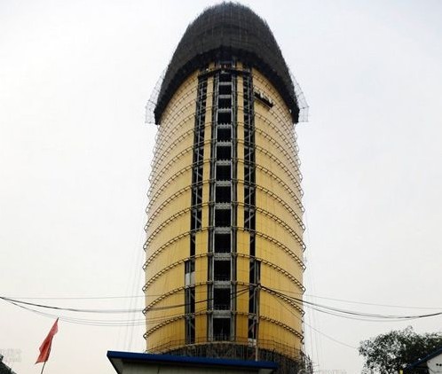 近日,位于北京CBD正在建設中的人民日報新大樓一改往日的灰色外觀,披上一層酷似IPHONE5S的“土豪金”,金光燦燦,直插云霄。據悉,由于北京風大,為了保證安全和精準度,所以要“穿”上一層“保護服”來安裝玻璃幕墻。人民日報新大樓方案2009年中標,當年10月施工,預計2014年5月竣工。