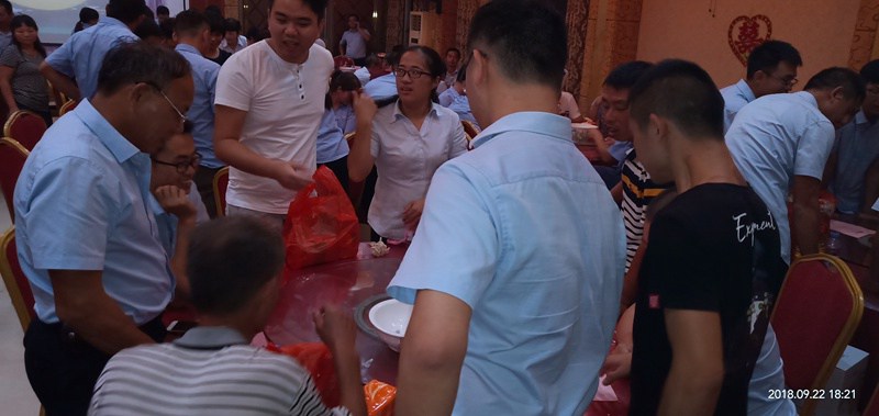 海上生明月,天涯共此時。中秋,一個溫馨、團圓的美好日子;一個歡樂、和諧的美好日子;一個充滿詩情畫意、處處美酒飄香的美好日子!值此佳節來臨之際,為豐富員工的精神物質生活,增強員工的凝聚力和歸屬感。2018年9月22日,興巖集團2018中秋博餅晚宴在常山生態園餐廳隆重舉行,全體員工200多人齊聚一堂,共度美好佳節。