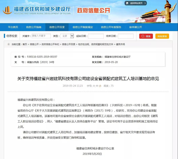 閩建辦筑函原文 關于支持福建省興巖建筑科技有限公司建設全省裝配式建筑工人培訓基地的意見 你公司《關于在我司設立全省裝配式建筑技術工人培訓考核基地的請示》(興巖科技﹝2019﹞02號)收悉。根據省政府辦公廳《關于大力發展裝配式建筑的實施意見》(閩政辦〔2017〕59號),經研究,支持你公司建設全省裝配式建筑工人培訓基地。該基地可面向全省接受社會委托開展裝配式建筑工人培訓,對培訓合格的,由你公司核發《建筑工人職業培訓合格證》,納入“福建省建設從業人員綜合服務平臺”管理。該證書可用于企業資質申報和施工現場持證上崗。 請你公司要針對裝配式建筑工人崗位特點,加強培訓基地建設管理,按照住建部、省廳相關文件要求規范培訓考核,確保培訓考核質量,并自覺接受主管部門指導和監督。 福建省住房和城鄉建設廳辦公室 2019年5月20日 喜報!05月20日福建省住房和城鄉建設廳發布題為“《關于支持福建省興巖建筑科技有限公司建設全省裝配式建筑工人培訓基地的意見》 ”的閩建辦筑函〔2019〕34號。這表示我集團下屬福建省興巖建筑科技有限公司裝配式建筑工人培訓基地,可面向全省接受社會委托,開展裝配式建筑工人培訓,并頒發有效的專業培訓合格證書。 為適應建筑產業現代化發展趨勢,響應福建省住建廳做好裝配式建筑技術工人培訓工作的指示,興巖科技不斷完善基礎設施,并設立了完善的培訓管理制度。借鑒省內、外的做法經驗,采用“理論+實操+考核”相結合的培訓方式,使參訓人員對裝配式建筑的理論體系有系統了解的同時,更加直觀的學習裝配整體式建筑從設計到施工及管理全過程,以確保學員最終能夠真正掌握裝配式建筑工種職業技能。 后續興巖科技擬在現有培訓基地的基礎上,還將進一步與高校合作成立“興巖建筑科技產業學院”。 裝配式建筑發展既要高質量發展、綠色發展,也要安全發展,建設完成后興巖科技培訓基地將不僅僅面向本企業和合作企業的裝配式建筑產業工人,在承接好漳州市裝配式建筑技術工人培訓的同時,也將努力為全省建筑業轉型升級和建筑產業化發展做出應有貢獻。