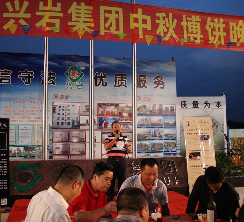 每當中秋佳節臨近,夜色闌珊時,漳州的大街小巷便會發出骰子撞碰瓷碗的悅耳叮當聲,這就是“博餅”。為了讓員工感受興巖集團這個大家庭的溫暖,同時也為了讓來自各地的員工感受富有閩南特色的中秋節傳統文化。9月6日晚,興巖集團在公司所屬的長泰金里花園項目部廣場,舉辦了2014年度中秋晚宴暨博餅活動。