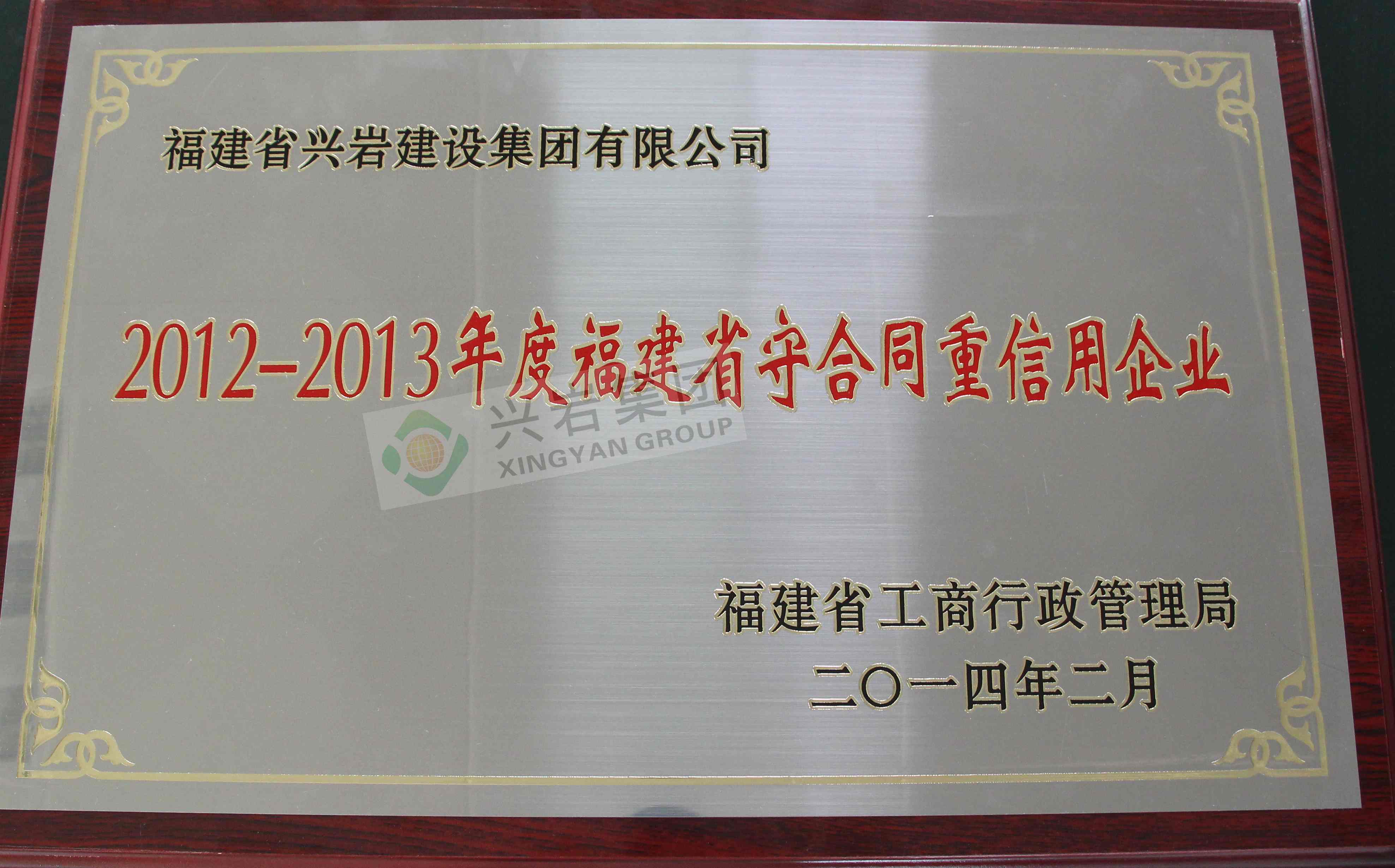 熱烈祝賀我公司獲得2012-2013年度福建省守合同重信用企業稱號。