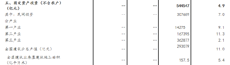 1月17日,國家統計局公布2021年國民經濟相關數據。初步核算,2021年全年國內生產總值(GDP)超114萬億元,為1143670億元,按不變價格計算,比上年增長8.1%,兩年平均增長5.1%。其中,2021年全國建筑業總產值293079億元,同比增長11.0%。 ●2021年全國建筑業總產值增長情況 由上圖,2021年全國建筑業總產值293079億元,同比增長11.0%;全國建筑業房屋建筑施工面積157.5億平方米,同比增長5.4%。 ●2021年全國固定資產投資增長情況 2021年1—12月份,全國固定資產投資(不含農戶)544547億元,比上年增長4.9%;比2019年1—12月份增長8.0%,兩年平均增長3.9%。其中,民間固定資產投資307659億元,比上年增長7.0%。從環比看,12月份固定資產投資(不含農戶)增長0.22%。 分產業看,第一產業投資14275億元,比上年增長9.1%;第二產業投資167395億元,增長11.3%;第三產業投資362877億元,增長2.1%。 第二產業中,工業投資比上年增長11.4%。其中,采礦業投資增長10.9%,制造業投資增長13.5%,電力、熱力、燃氣及水生產和供應業投資增長1.1%。 第三產業中,基礎設施投資(不含電力、熱力、燃氣及水生產和供應業)比上年增長0.4%。其中,水利管理業投資增長1.3%,公共設施管理業投資下降1.3%,道路運輸業投資下降1.2%,鐵路運輸業投資下降1.8%。 分地區看,東部地區投資比上年增長6.4%,中部地區投資增長10.2%,西部地區投資增長3.9%,東北地區投資增長5.7%。 分登記注冊類型看,內資企業投資比上年增長4.7%,港澳臺商企業投資增長16.4%,外商企業投資增長5.0%。