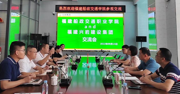 2022年09月16日,福建興巖集團誠邀福建福建船政交通職業學院黃穎院長、卜力平教授級高工、梁鵬飛高工、朱明栓副院長,參加“校企合作、助力發展、共創未來”的交流會。興巖集團總經理葉永斌、財務副總張麗嬪、總工程師鄭東明及相關部門主管出席。本次交流會以研討交流,促進高校與企業交流、學術分享,市場動態、業務合作為中心展開。